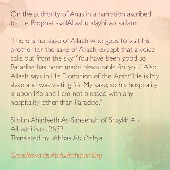 # There is no slave of Allaah who goes to visit his brother for the sake of Allaah, except that ..