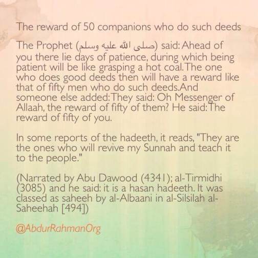 # The reward of 50 companions who do such deeds